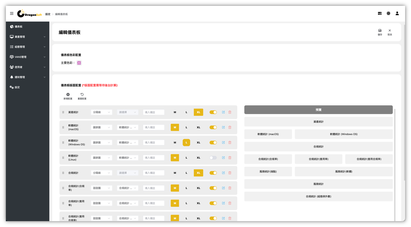 自行配置儀表板主頁相關統計圖表視覺佈局